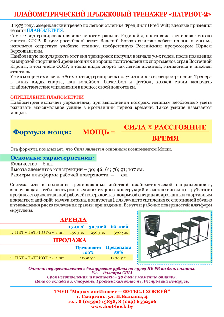 Практическое применение плайометрического прыжкового тренажера "ПАТРИОТ-2" в группах хоккеистов 2002-1996 г. р. МХЛ "ПАТРИОТ" 2014