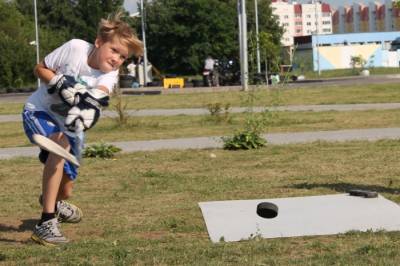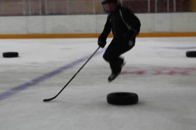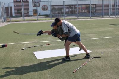 С такой весёлой ноты переходим к тренировкам. После традиционного просмотра видеоматериалов Александр Александрович Кочнев громко сообщает своей группе ребят 2002-2004 г.р.: "Обуваем кроссовки, надеваем краги и берём клюшки!" После выполнения этой команды Александр Александрович дружно выводит ребят на площадку за спортивно-развлекательный центр. Под его руководством ребята выполняли упражнения с клюшками и мячами для гольфа - повышали уровень работы с "орудием труда хоккеиста".
