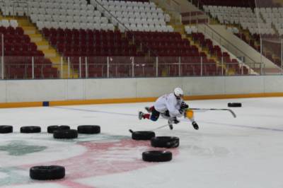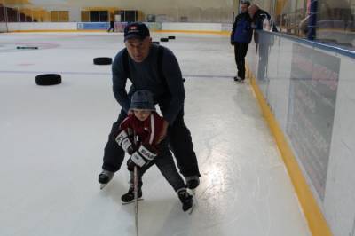 В 16:00 у ребят младшего возраста начнётся тренировка. Замбони (ледоуборочная машина) ещё не успела покинуть лёд, а главный тренер Эдмунд Пиварунс уже расставляет колёса, которые хоккеистам придётся огибать: