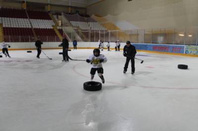 Тренировка закончилась игрой на выбывание: все дети с шайбами стали в центральный круг. Задача – остаться со своей шайбой в кругу, заставив остальных его покинуть. Последний оставшийся и был назван победителем.